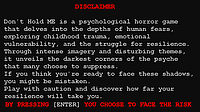 Don't Hold ME 10.31.2025 What's new? -Sound balancing -Chapter 1 intro -Ch1: Aqua game included -Top Floor mapped -Menu removed -Dash removed -Playtimer fixed -Polishing/bug fixing What's next? - full...